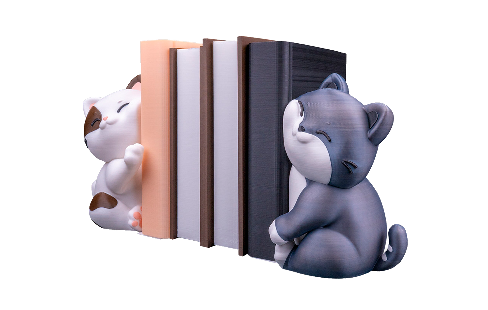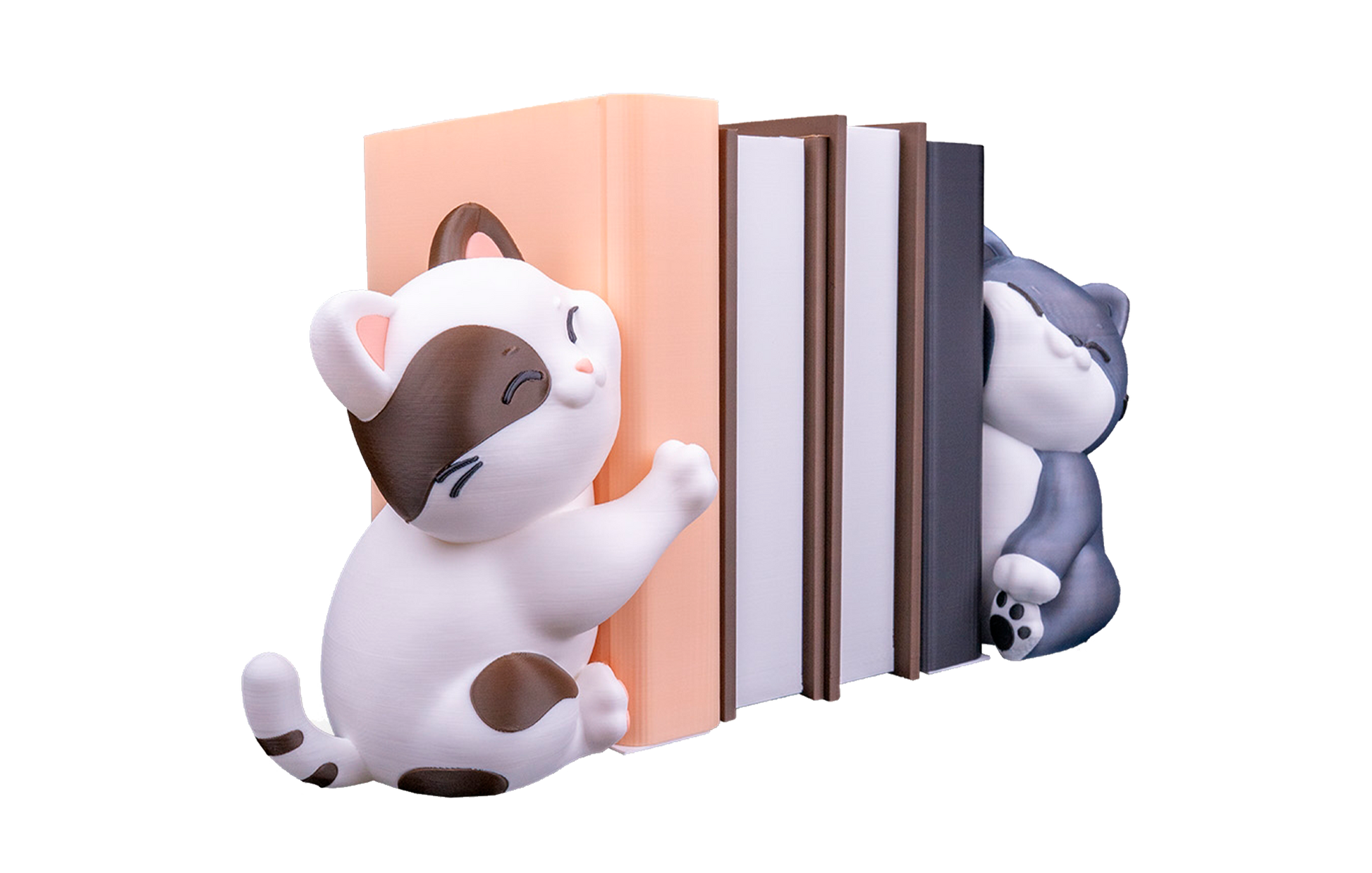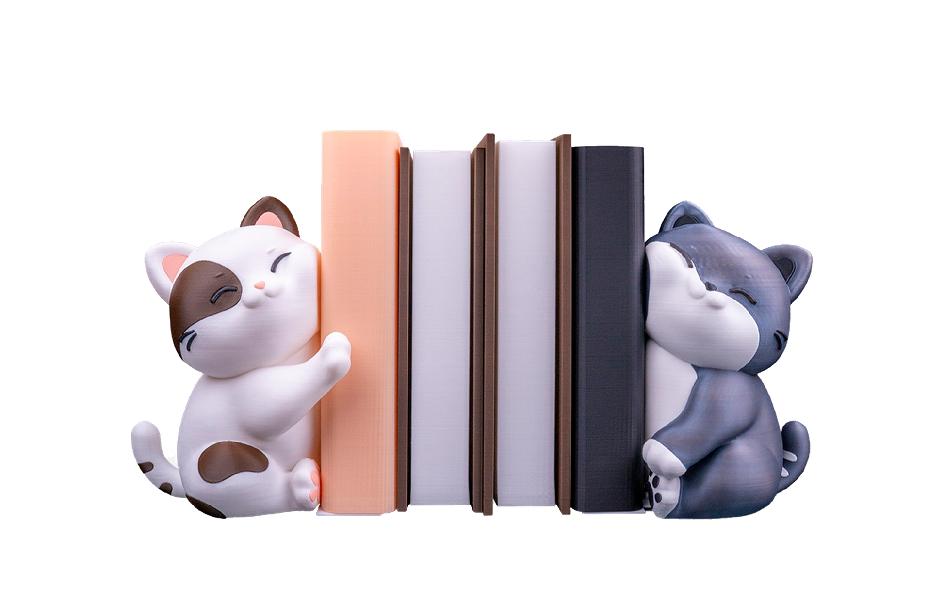 Adicione um toque de fofura felina à sua estante com este encantador aparador de livros! Dois gatinhos espertos aparecem apoiando-se nos seus livros - um pelo lado esquerdo e outro pelo direito - criando uma cena divertida enquanto mantêm sua coleção literária perfeitamente organizada.