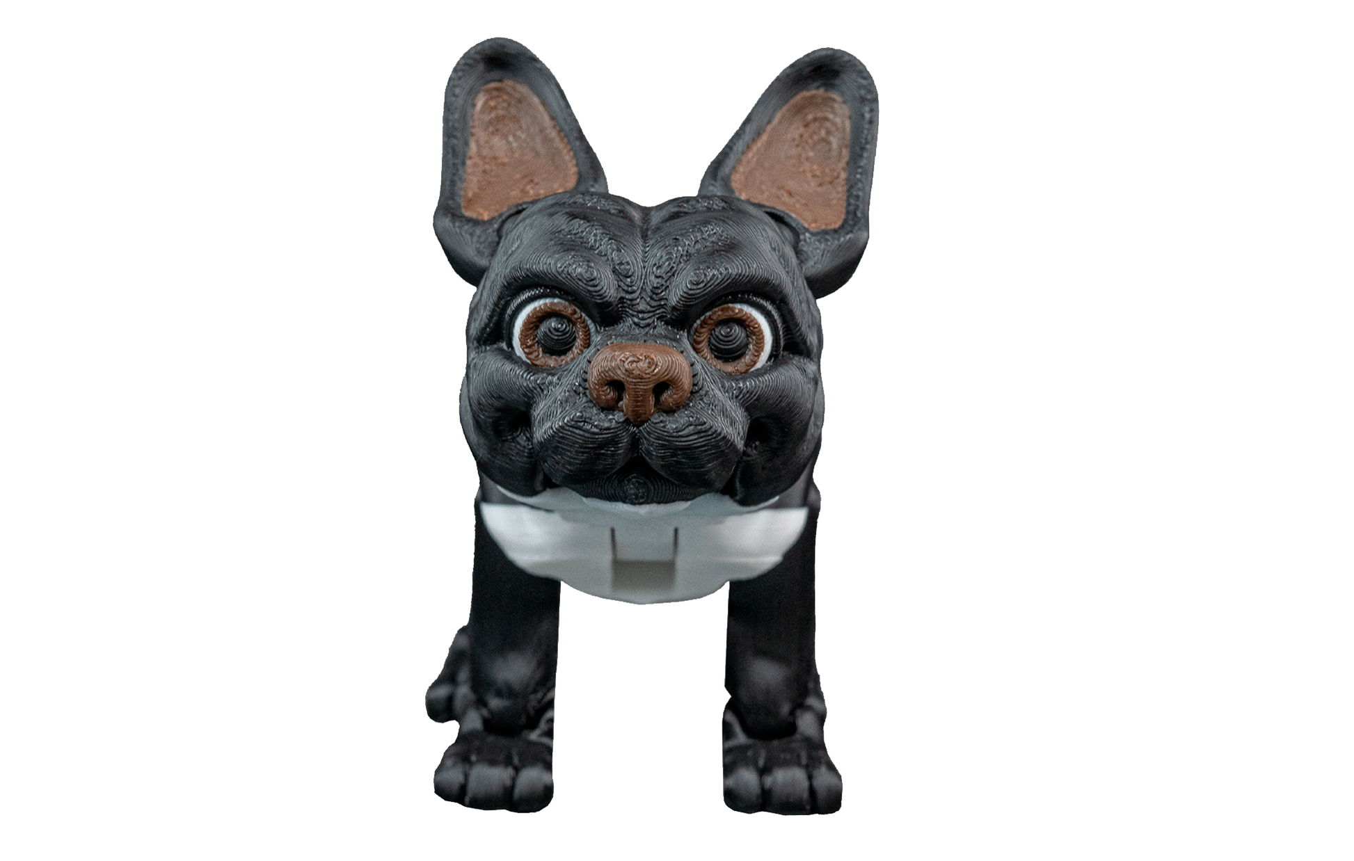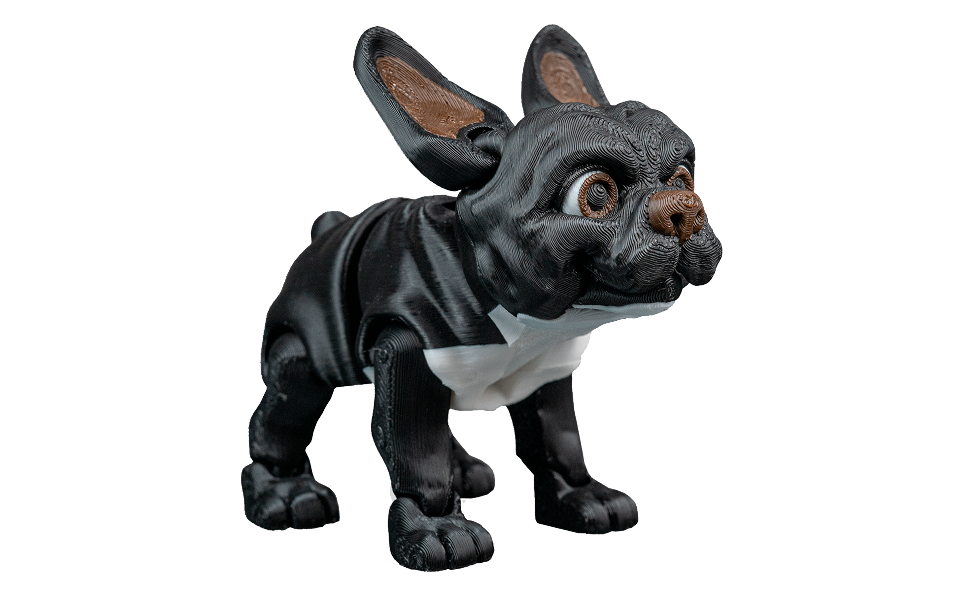 Encante-se com este irresistível Bulldog Francês em 3D, capturando toda a personalidade e charme desta raça urbana e cheia de estilo! Com suas orelhas de morcego, focinho achatado e expressão engraçada, este modelo articulado é perfeito para quem ama cães compactos cheios de atitude.