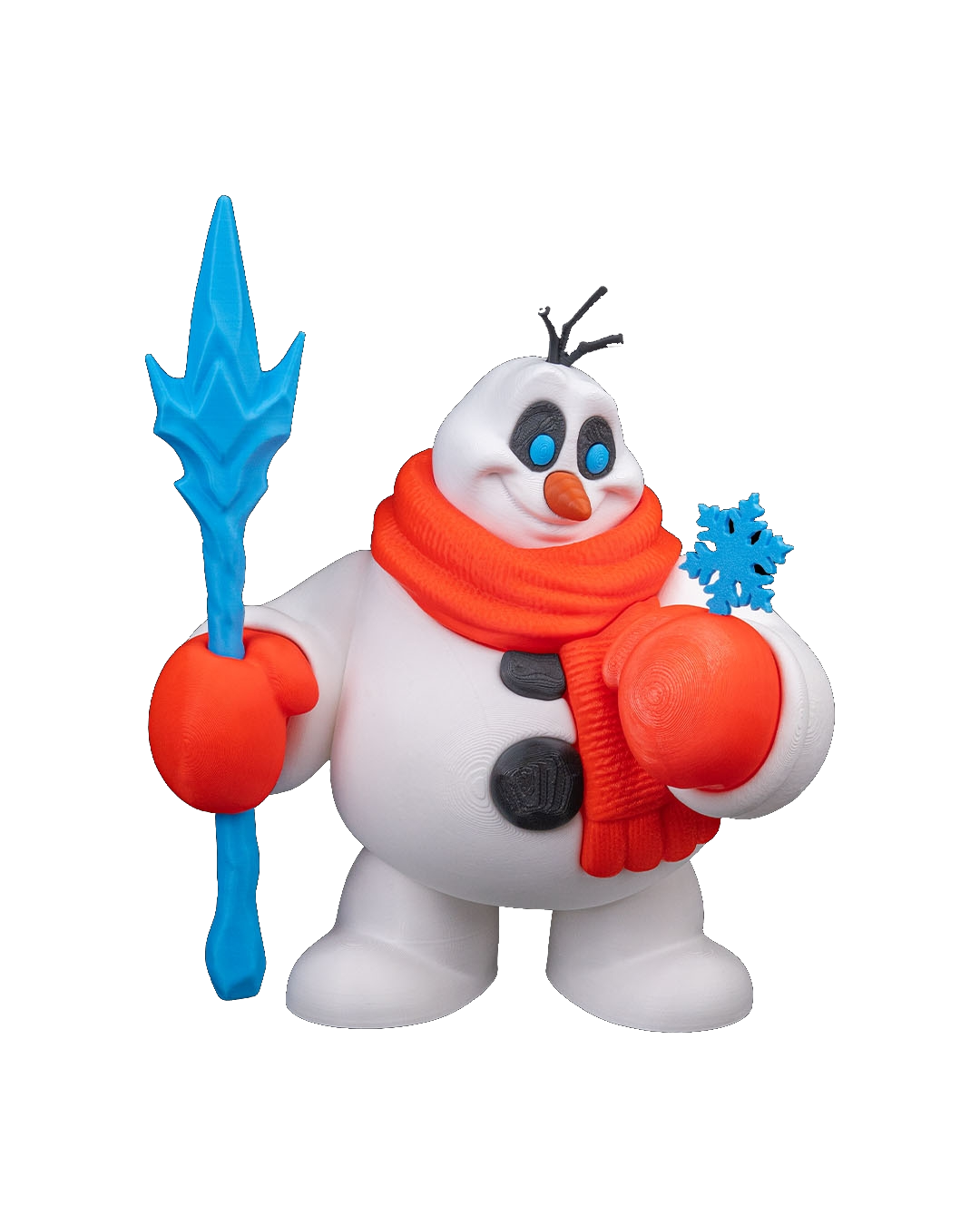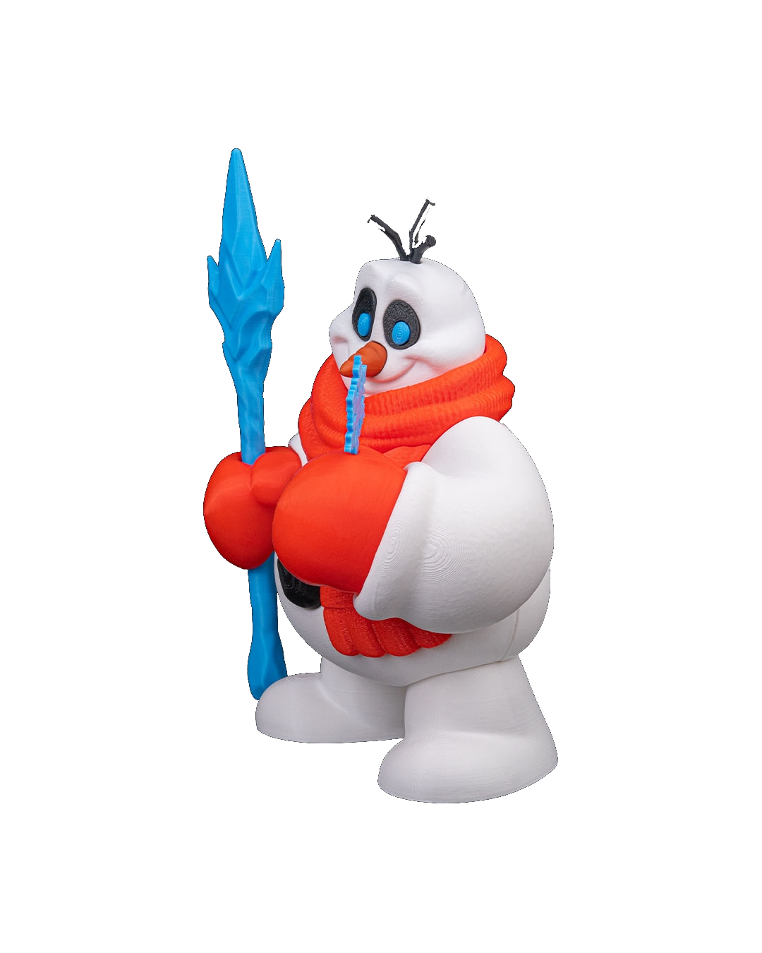 Descubra o encanto do inverno através dos olhos deste boneco de neve! Em uma cena de pura magia, ele segura um bastão de gelo enquanto admira um floco de neve em sua outra mão, capturando a essência da temporada fria com expressão adorável e cachecol vermelho tradicional. Perfeito para trazer wonder e encantamento para sua decoração natalina.