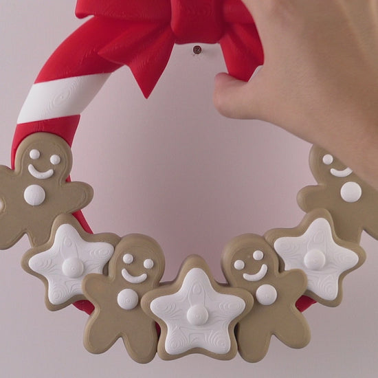 Deixe sua decoração natalina mais doce que biscoito de gengibre fresco! Esta encantadora guirlanda reúne vários biscoitos espalhados em uma base vermelha e branca, com um laço vermelho no topo que parece tirar toda a doçura da peça. Perfeita para trazer calor, cor e um toque deliciosamente lúdico para qualquer ambiente.