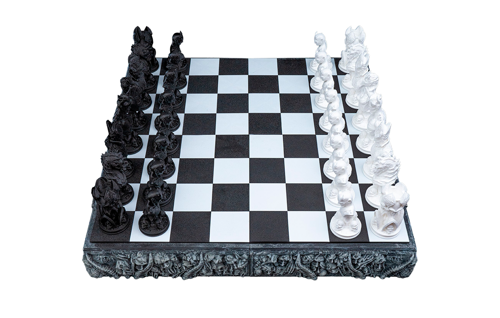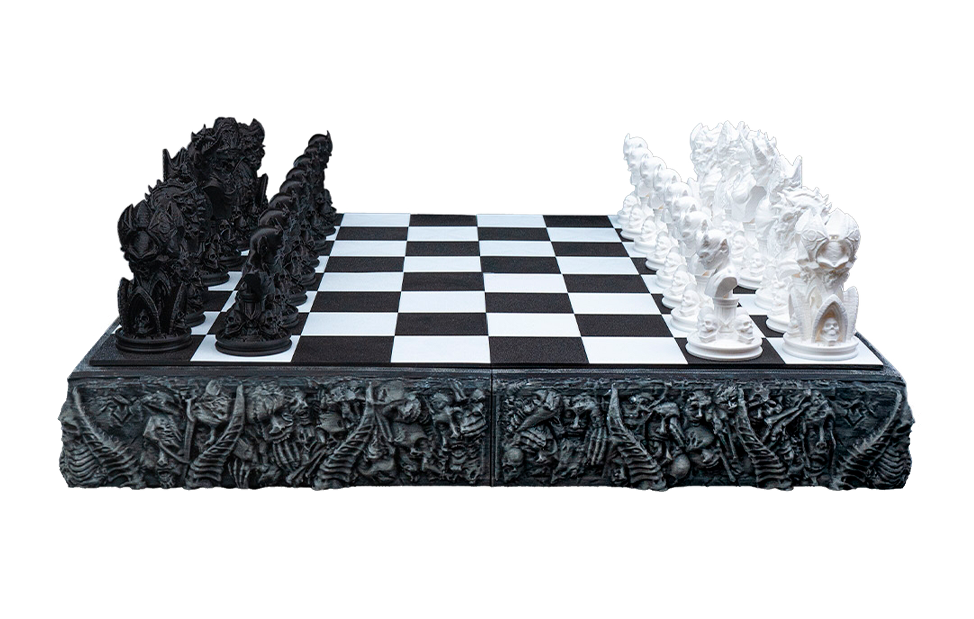 Desafie as profundezas do xadrez com este assustadoramente belo jogo de peças demoníacas! Cada figura esculpida em 3D transforma o tabuleiro em um campo de batalha infernal, onde estratégia e arte sombria se fundem. Ideal para colecionadores de temas dark, jogadores intensos ou amantes do ocultismo.